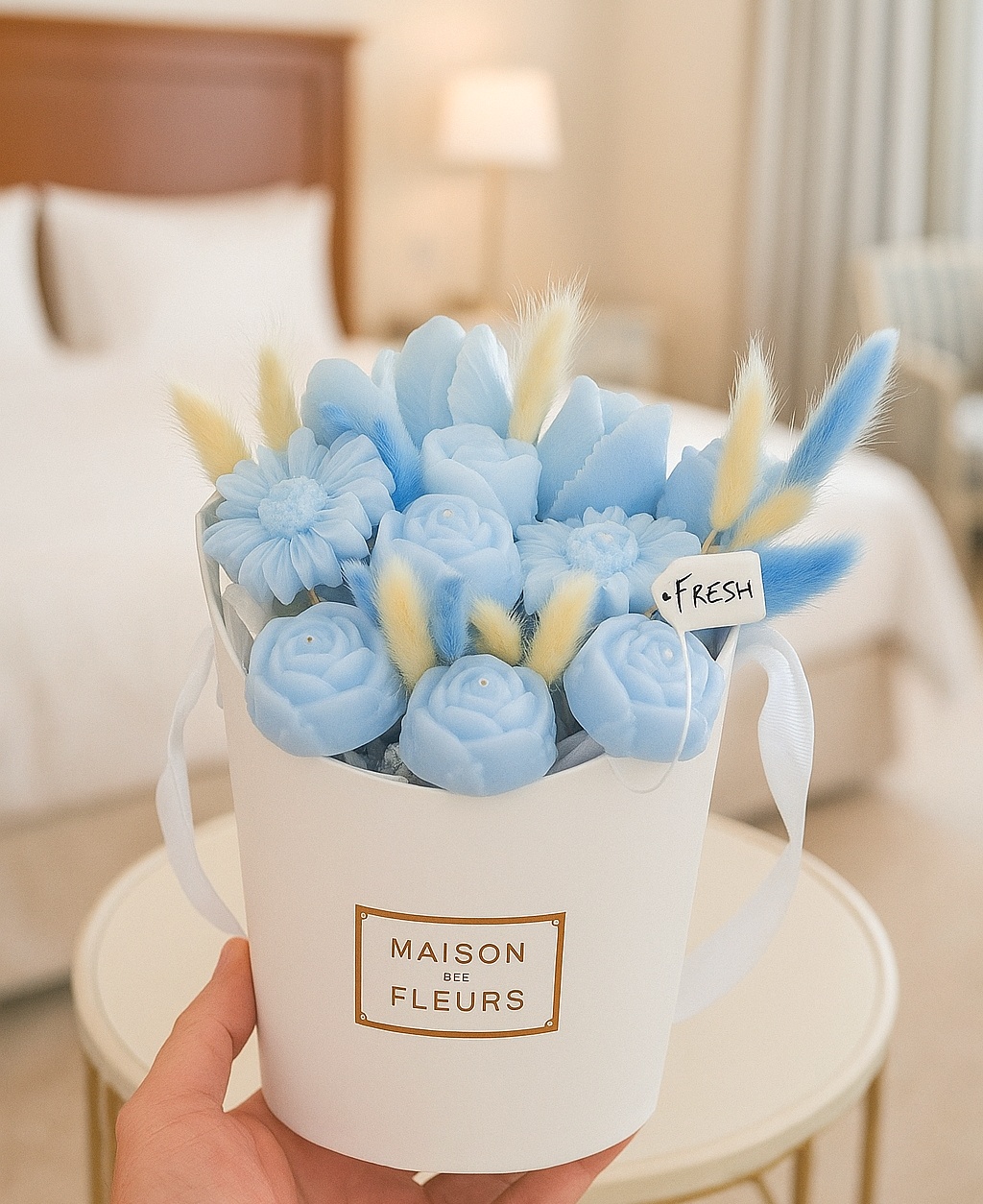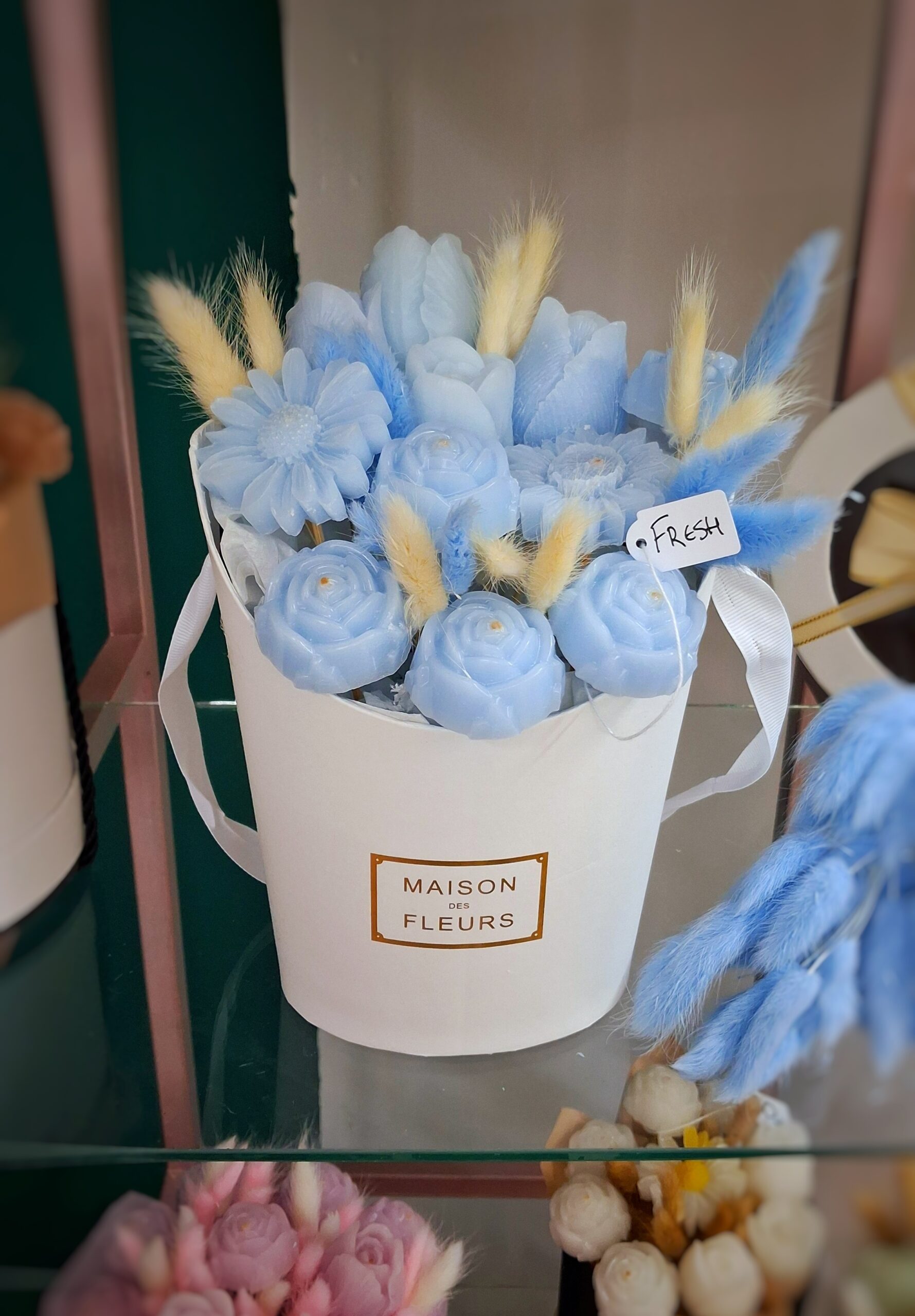 Χειροποίητη κατασκευή με κερινα λουλούδια σε κουτι!!!