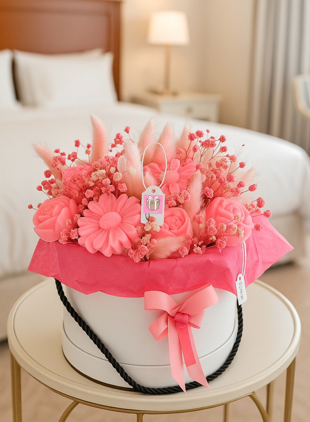 Χειροποίητη συνθεση με κερινα αρωματικά λουλούδια σε κουτι !!!
