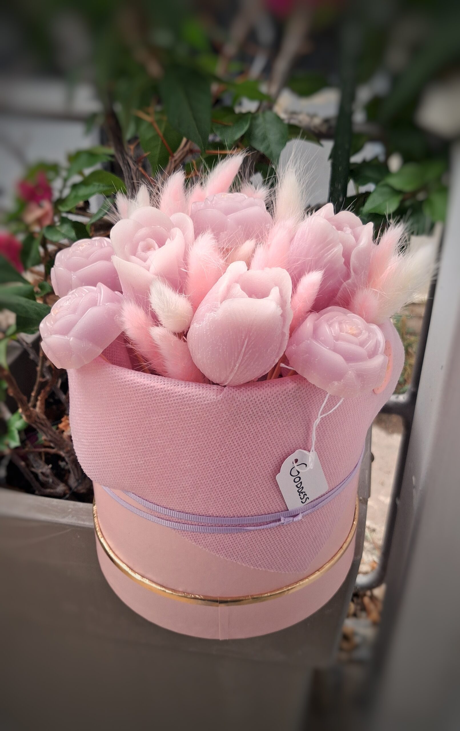 Χειροποιητη συνθεση με κερινα αρωματικα λουλουδια σε κουτι !!! quantity