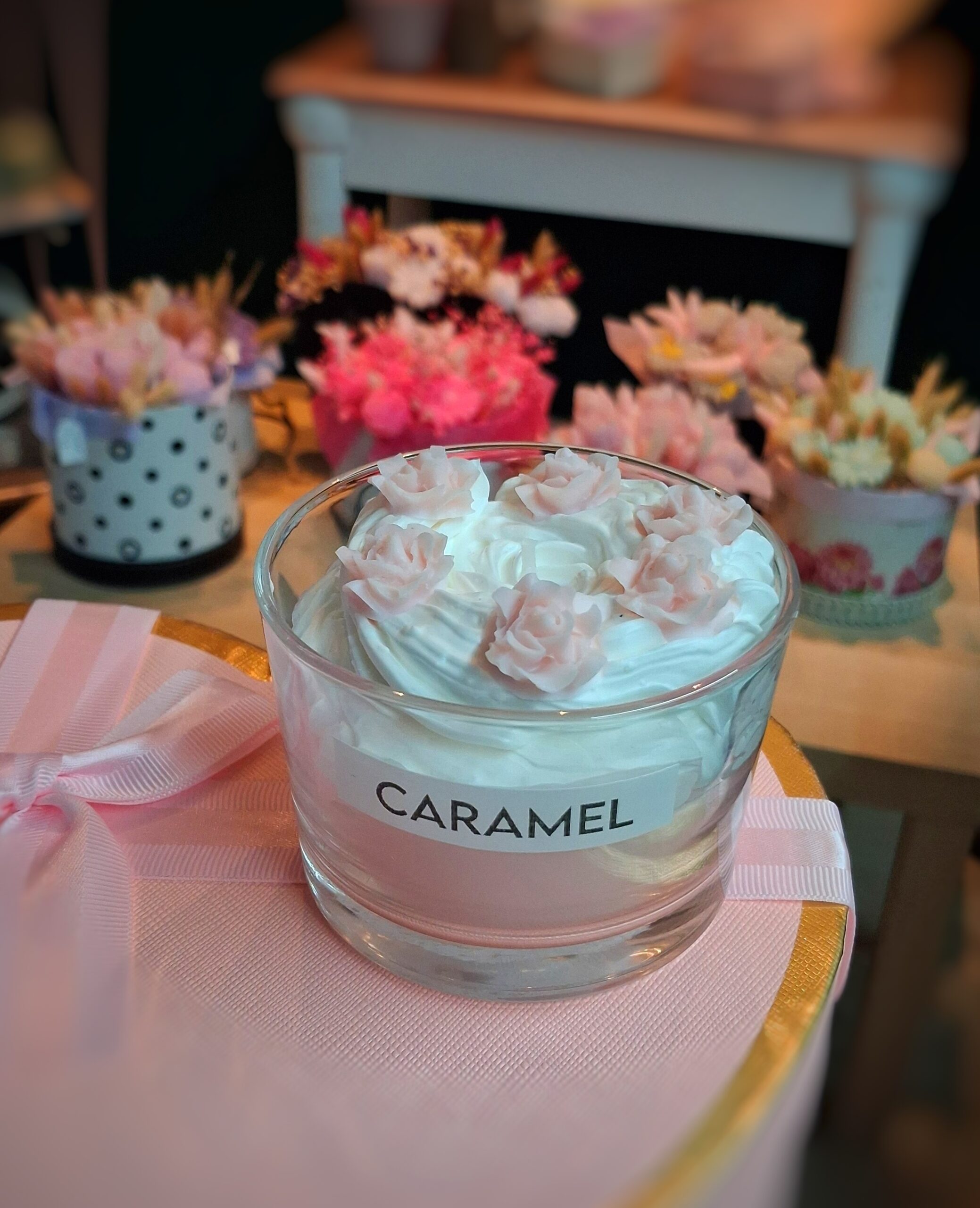 Χειροποιητο αρωματικό κερι με σαντιγί ( αρωμα caramel )
