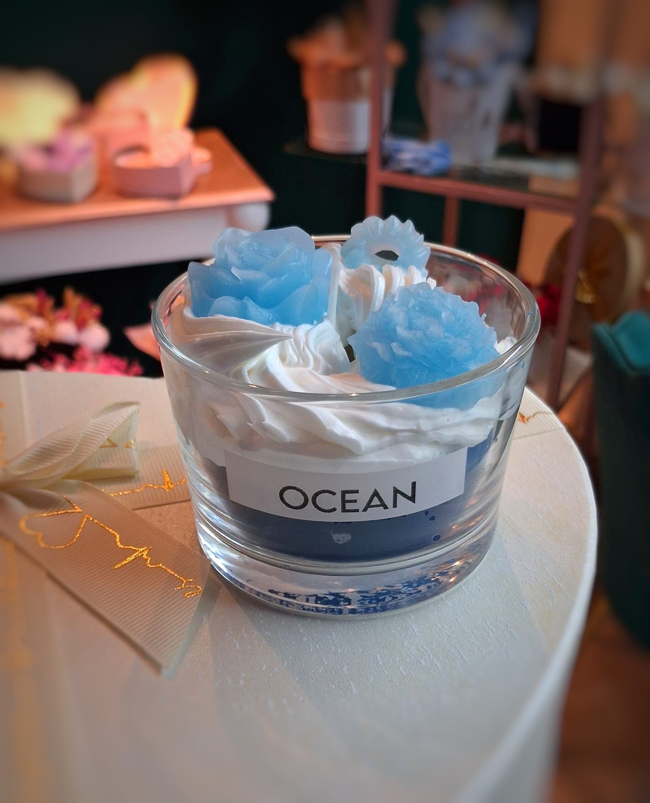 Χειροποιητο αρωματικό κερι με σαντιγί ( αρωμα ocean )